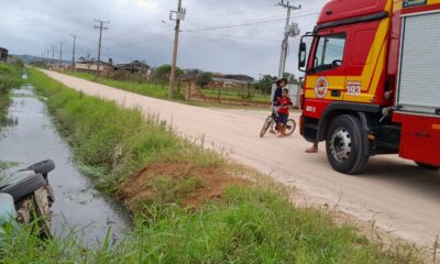 A equipe de resgate foi chamada para atender a um acidente de trânsito, caracterizado por uma saída de pista seguida de queda em um córrego. No...