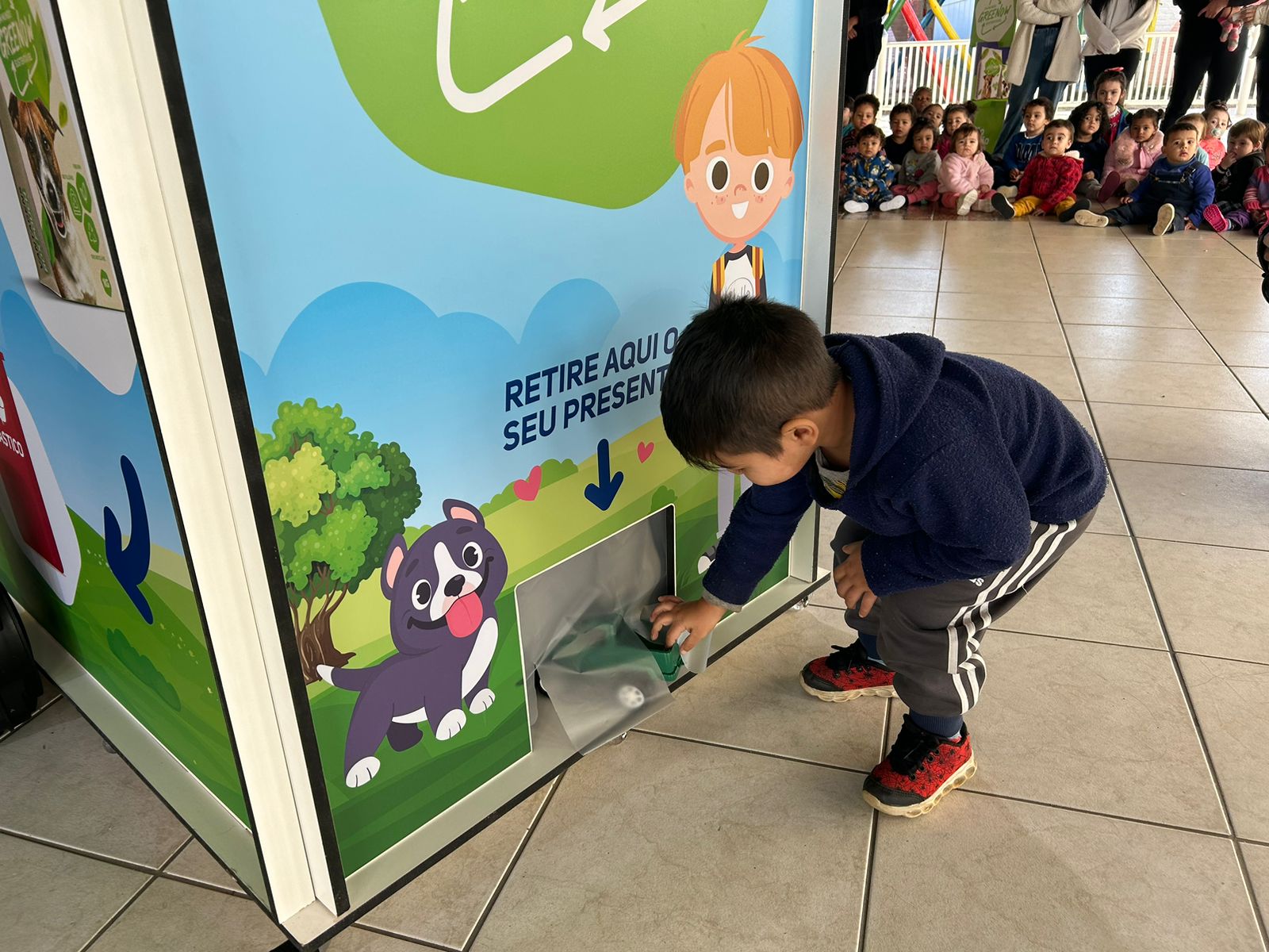 O processo de reciclagem foi explicado de forma lúdica e interativa às crianças da Abadeus, na manhã dessa quarta-feira, 5 de junho. No Dia do meio Ambiente, a Canguru Embalagens levou, à instituição, a Caixa Mágica, uma iniciativa do projeto Greenow que tem como objetivo disseminar a sustentabilidade e a economia circular. Alunos entre dois e sete anos participaram da dinâmica, que consistia em colocar uma embalagem de um lado da caixa, e retirar um brinquedo do outro lado, enfatizando a ideia de que, se o lixo tiver o destino certo, poderá dar origem a um novo objeto, com um novo propósito.