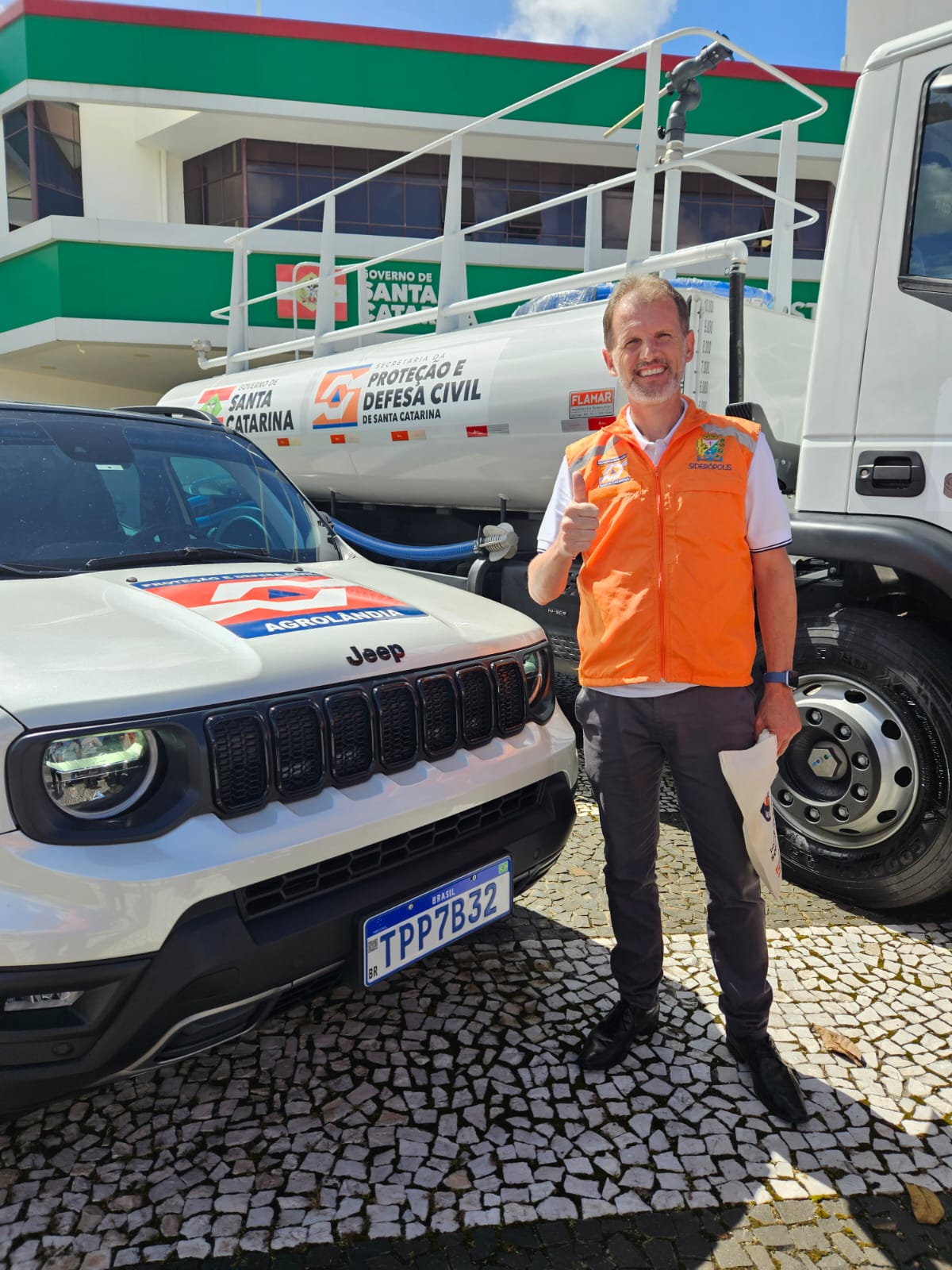 Siderópolis recebeu, nesta terça-feira, dia 31, um veículo Jeep Renegade e um kit destinado à Proteção e Defesa Civil. O evento de entrega foi realizado no Teatro Governador Pedro Ivo, em Florianópolis, onde o vice-prefeito de Siderópolis, Rafael Gustavo Frello, recebeu, além do veículo, um kit contendo aparelhos eletrônicos como drone, tablet e computador.