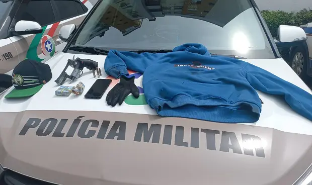 No local da colisão a PM encontrou o dinheiro, um moletom, o celular e o revólver usado no crime.