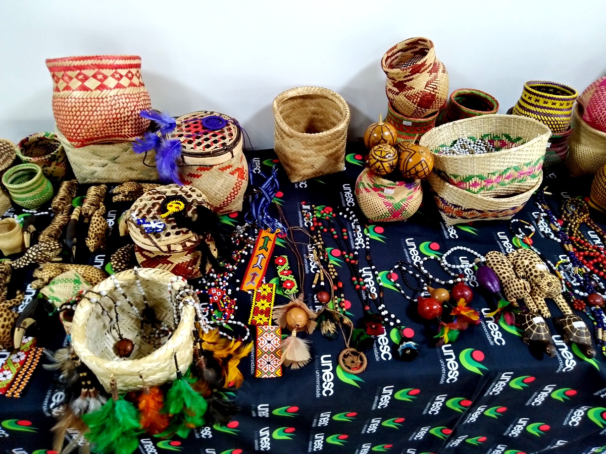 Indígenas expõem artesanatos na Feira Solidária da Unesc