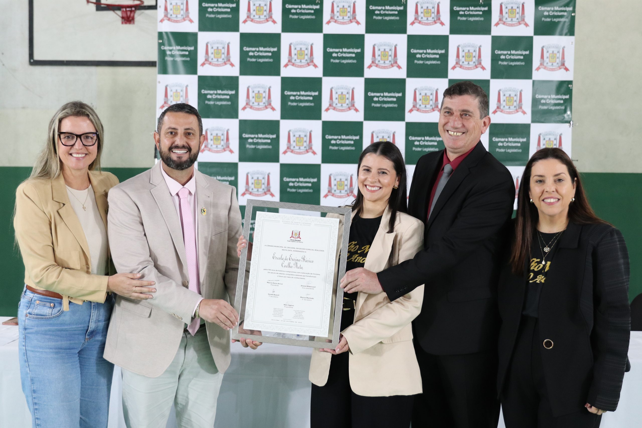 A Escola de Educação Básica (E.E.B.) Coelho Neto foi homenageada pela Câmara de Vereadores de Criciúma em uma Sessão Especial realizada na noite desta quarta-feira (29). A solenidade ocorreu no Ginásio de Esportes da própria instituição, no Bairro Santa Bárbara, reunindo alunos, ex-professores e a comunidade escolar para celebrar 100 anos de história e dedicação à educação.