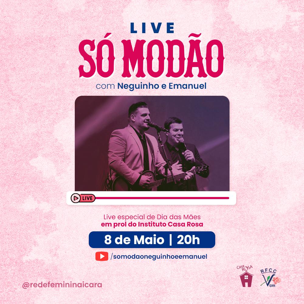 A Live será comandada pela dupla Neguinho e Emanuel. Quem acompanhar a live poderá fazer doações através de transferências e Pix. “E também vai se divertir porque a live só Modão é muito boa. Precisamos de ajuda para continuar ajudando e tenho certeza que a região vai nos ouvir”.