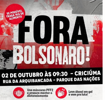 Sábado será de ato “Fora Bolsonaro” em Criciúma