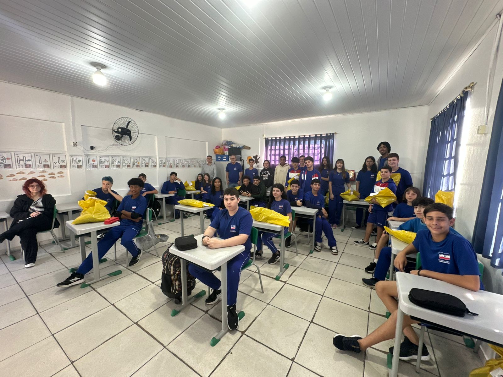 Pela manhã, o prefeito de Siderópolis Franqui Salvaro, acompanhado do secretário de Educação Méricles Rossa, o Meck, visitou a instituição e aproveitou para dialogar com os alunos e entregar, em mãos, os kits de inverno, que incluem uma camiseta de manga curta, uma camiseta de manga longa, uma calça e uma jaqueta; e os kits de verão, compostos por camiseta e bermuda para os meninos e camiseta e short saia para as meninas. A entrega finaliza com os alunos da tarde.
