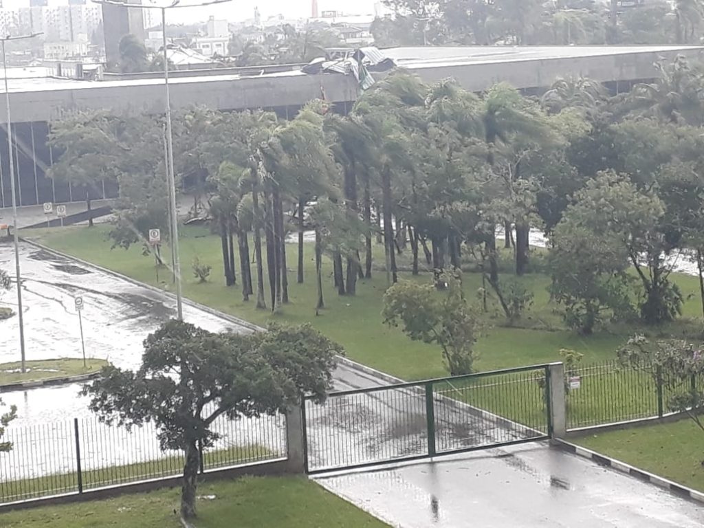 O temporal da tarde deste sábado foi rápido, durou pouco mais de 10 minutos, mas foi tempo suficiente para provocar estragos e assustar os moradores da região. As rajadas de vento provocaram destelhamentos no Paço Municipal Marcos Rovaris e em algumas residências. O tempo também afetou a rede elétrica e deixou pelo menos 13 mil unidades sem abastecimento.