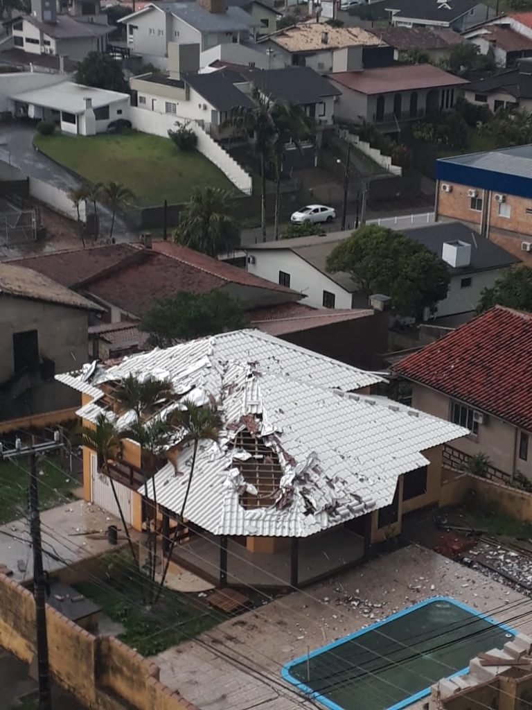 O vento também destelhou algumas residências, derrubou placas de publicidade e árvores. Algumas ficaram sobre a pista complicando o trânsito. A rede elétrica também foi danificada e pelo menos 20 bairros de Criciúma tiveram o abastecimento comprometido.