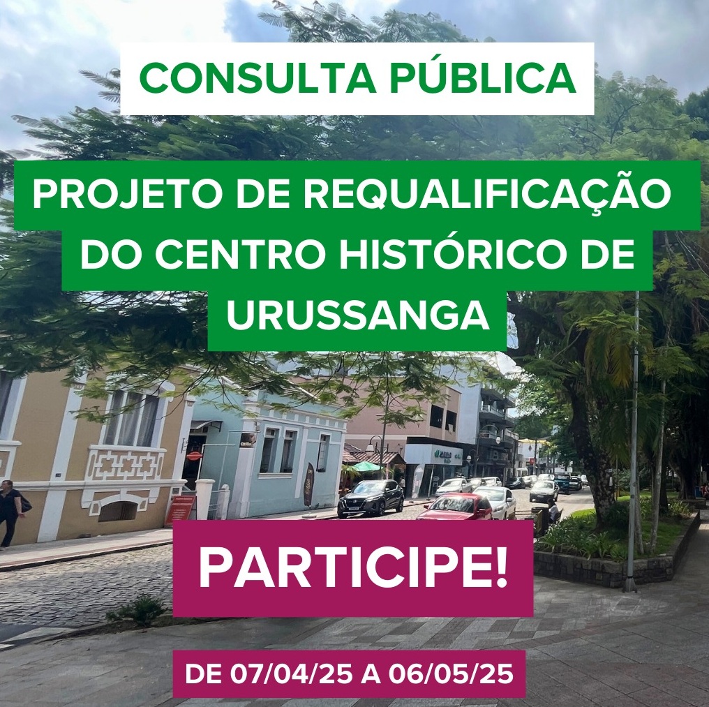O município de Urussanga abriu uma consulta pública para receber a colaboração da comunidade a respeito do projeto-piloto de Requalificação do Conjunto Arquitetônico e Urbano do entorno da Praça Anita Garibaldi. O projeto elaborado pela Fundação Catarinense de Cultura (FCC), nos anos de 2017 e 2018, visa preservar e valorizar o patrimônio cultural da cidade.