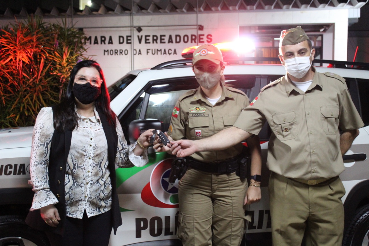 Os vereadores de Morro da Fumaça se reuniram na terça-feira, dia 20, antes da Sessão Ordinária para realizar a entrega dos veículos aos Policiais Militares de Morro da Fumaça. A motocicleta CB 500 no valor de R$ 39.436,00 e o Jeep Renegade no valor de R$ 95.660,00 serão usados principalmente na Rede Catarina de Proteção à Mulher, projeto pelo qual a emenda foi encaminhada pela deputada estadual Ada Faraco de Luca (MDB). Além dos veículos foram entregues diversos equipamentos que irão reforçar ainda mais o trabalho da PM na cidade.